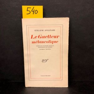Le Guetteur mélancolique. Poèmes inédits. Préface d'André Salmon. Frontispice de Picasso. P., NRF, 1952, in-12, br. Edit. orig. tirée à 1545 ex. num. 1/412 vélin pur fil Lafuma-Navarre.