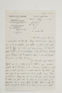 Belle lettre sur leur amitié. Impossible de dire sa joie : « J’ai rendu, à partir de votre petit mot le baiser qu’en rêve, j’avais reçu de vous : le baiser de paix, d’amitié, et de réconciliation. (Vous êtes “l’homme des baisers” comme Pérignon avait “les enfants du baiser” : je ne sais laquelle de “nos mères” vous baise la main). Que deux êtres ayant autant d’affinités que nous – souffrez que je me flatte un peu – puissent se fâcher plus de huit jours, – et, à l’avenir, se fâcher un seul jour, un seul moment, – ce serait vraiment trop bête. Je suis auprès de vous, suivant l’une de vos paroles, comme l’eau sur la rive ; éloignez-vous, et je n’existe plus ; je ne vois que du sable, que fuit même le soleil, et où je n’aurais qu’à disparaître. Sur ce rivage fertile et solide, fleuri et plein de chants, où jouent les Amours et les Muses, il n’y a qu’un petit vallon, qui est votre souci de certaines règles de l’“incertitude” puérile et honnête »… Il comprend « que vous pouviez avoir vos “irritations”, comme j’ai les miennes, – et le droit d’une amitié aussi vraie que la mienne, doit, j’espère, vous ne doutez pas, être de ne pas les provoquer. Je suis sûr que, derrière les joies cruelles que vous sembliez étaler, il y avait le regret sincère de me faire une peine infinie. D’accord que je méritais peut-être une leçon, mais je vous en voulais d’avoir si mal – ou si bien – pris votre temps »... Etc.
