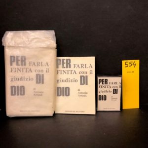 Per farla finita con il giudizio di Dio [Pour en finir avec le jugement de Dieu]. S.l., Edizioni del Sole nero, (1983), 1 vol. in-12 broché + 1 cassette audio, sous pochette imprimée. Texte intégral avec l'enregistrement radiophonique du 28 novembre 1947.