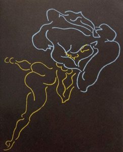 [BETTENCOURT, Pierre]. Ni oui ni non. Dessins 6 9 Poèmes. Avec une histoire coupe-papier. S.l., [L'Auteur], 1942, in-12, br., à toutes marges, couv. rempl. illustrée par Bettencourt. Edit. orig. tirée à 170 ex. num. Texte érotique de Pierre Bettencourt illustré par lui de nombreuses compositions libres. Rare et bel exemplaire.