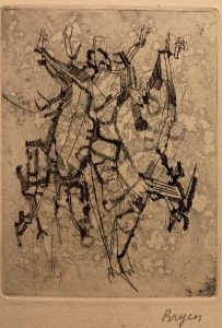 Jepeinsje. Poème et eau-forte de Camille Bryen (gravure originale en noir signée au crayon). S.l., PAB, (1955), plaquette 8°, en feuilles, couv. rempl. Edit. orig. 1/40 ex. num. sur papier d'Auvergne, seul grand papier, signé par Pierre André Benoît. Rare et bel exemplaire.