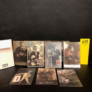 Canal +.- "Bonne année 1993". Set de 23 cartes postales, sous pochette à rabats (pochette lég. piquée). Reproduction de cartes postales anciennes détournées, reprenant tous les animateurs de Canal +.