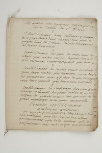 L’auteur présente les quatre projets politiques auxquels il travaille, pour les développer ensuite de façon plus approfondie. Le premier concerne l’établissement d’une « académie politique » pour faire progresser dans chaque état cette science, « la plus importante des siances humaines ». Il veut également établir « des prix de vertu dans les colèges pour rendre un jour le genre humain plus vertueux et par conséquent plus heureux » ; un scrutin sans cabales pour assurer de façon plus juste la promotion des officiers qui se distinguent par leur mérite national ; et enfin un « Etablissemant de l’arbitrage Europain pour delivrer les hommes des grands malheurs que cauzent les guerres et pour leur procurer les grans avantages de la paix perpetuelle ». Ce dernier projet, si visionnaire, est aussi le plus développé du manuscrit...{CR} Cette copie, soigneusement établie par un secrétaire, et revue par l’auteur, provient des archives de Mme Dupin, femme du fermier général Claude Dupin ; l’abbé de Saint-Pierre était un hôte familier du château de Chenonceau.