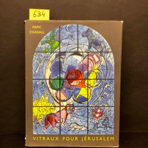 Avec 2 lithographies originales.- CHAGALL (Marc). Vitraux pour Jérusalem. Introduction et notes de J. Leymarié. Monte Carlo, André Sauret, 1962, 4°, 210 p., cartonnage toilé gris, jaquette illustrée en couleurs (petits défauts). Édit. orig. illustrée par Marc Chagall de 2 Lithographies originales en double-frontispice et de 36 lithographies hors texte, parfois en 20 couleurs, reproduisant les états des maquettes de l'artiste pour les vitraux des 12 tribus d'Israël. L'ensemble a été mis sur pierre par Charles Sorlier, tiré par Mourlot dans ses ateliers sous la supervision de Chagall. La jaquette est également tirée en lithographie par Mourlot. Typographie par Draeger. Nombreuses photographies en noir et en couleurs de Simone Guiley-Lagache dont celles des vitraux réalisés pour la Synagogue du Centre Médical Hadassah à Ein-Karem en Judée.