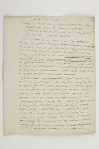 Deux intéressants écrits politiques.{CR} Enigme politique est daté du 16 mars 1741 : au sujet du Roi de Prusse Frédéric II, s’interrogeant sur ses procédés vis-à-vis de Marie-Thérèse, reine de Hongrie, « contradiction manifeste dans le caractère de ce prince tant vanté comme juste »...{CR} Contre l’avis de quelques françois qui vouloient que la France armât puissamment à la mort de l’Empereur et de la Czarine en 1740 est daté du 20 avril 1741, et comporte une ligne autographe rajoutée en bas de la première page : « et rendre ses sujets heureux, et plus heureux que les autres peuples »... Il envisage dans son ensemble les tensions et les conflits politiques et guerriers en Europe, et les analyse, pour conclure : « Voilà ce qui me fait juger que le conseil du cardl de Fleury au Roi de ne se point méler des guerres des princes allemans est le seul bon parti a prandre pour la France ».{CR} Provenance : archives de Mme Dupin.