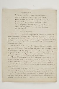 Le premier manuscrit (5 pages avec 4 mots autographes) développe une réflexion philosophique autour de la « Propozition » suivante : « Le sage, je veux dire celuy qui sait estimer plus juste que les autres ce qui est plus ou moins estimable, sait mettre l’esprit d’imagination et l’esprit de raizonnement chacun à leur place selon qu’ils employent plus utilement leurs talens pour augmenter le bonheur de la société »... Le second manuscrit s’inscrit dans une réflexion plus politique, puisqu’il traite de la Diète européenne (2 pages avec 3 mots autographes), en émettant une objection et une réponse à ce sujet : « Le Roi et le ministre ont intérêt d’augmenter leur pouvoir au depans du pouvoir du parlement et de viser au despotisme or l’établissement de la diète europaine fixeroit pour toujours les bornes de l’un et de l’autre pouvoir [...] et en cas de contestation entre le ministère et le parlement cette diète en seroit juge »...{CR} Provenance : archives de Mme Dupin.