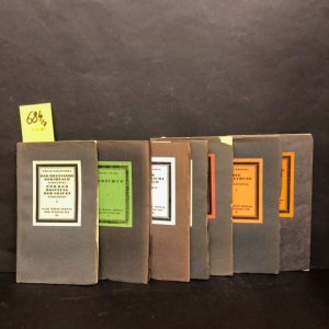 Collection "Der Jüngste Tag".- Leipzig, Kurt Wolff, 1913-18, 7 vol. 8° agenda, br. (qqs couv. lég. abîmées). Edit. orig. Comprend : KOKOSCHKA, Oskar. Der Brennende Dornbusch ; TRAKL, Georg. Gedichte ; DREY, Arthur. Der Unendliche Mensch ; REMISOW, Alexej. Legenden und Geschichten ; EDSCHMID, Kasimir. Das Rasende Leben ; WERFEL, Franz. Die Versuchung ; JUNG, Franz. Gnadenreiche unsere Königin.