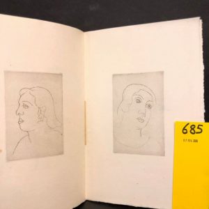 DERAIN.- GABORY (Georges). La Cassette de plomb. Ornée de deux gravures originales et inédites par monsieur André Derain (2 eaux-fortes hors texte en noir). P., Impr. Bernouard (étiquette de relais sur la couv. : éditions de la Galerie Simon, Paris), 1920, plaquette 4°, br., non coupé. Edit. orig. tirée à 155 ex. num. 1/125 vergé d'Arches, signé par l'artiste.