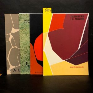 N°137. Palazuelo. P., Maeght, 1963, in-folio, en feuilles. Bien complet des 2 sérigraphies en couleurs et des 5 sérigraphies en noir./ Idem. N° 104. P., Maeght, 1958, in-folio, en feuilles. Complet de la lithographie en couleurs (couv.) et des 5 fac-similés de dessins./ Idem. N° 207. Cinq livres gravés. P., Maeght, 1974, in-folio, en feuilles. Bien complet de la lithographie en couleurs par Palazuelo (couv.) et des quadrichromies./ Idem. N°211. Fiedler. P., Maeght, 1974, in-folio, en feuilles. Bien complet des 4 lithographies en couleurs (dont la couv.) et des quadrichromies./ Ens. 4 vol.