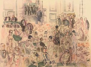 DUFY.- COCTEAU (Jean). Dufy présenté par Jean Cocteau. P., Flammarion, "Les Maîtres du dessin", 1949, grand in-folio, en feuilles, chemise édit. (taché et défraîchi). Edit. orig. tirée à 1050 ex. num. sur pur fil du Marais. Bien complet des 10 planches hors texte dont 5 en couleurs.
