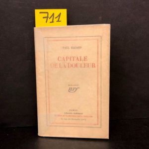 Capitale de la douleur. P., NRF, 1926, in-12, br., non coupé (couv. brunie). Edit. orig. tirée à 1003 ex. num. 1/894 pur fil Lafuma-Navarre. Complet du feuillet d'errata.