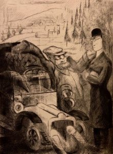 Knock ou le Triomphe de la médecine. Illustré de 12 gravures à l'eau-forte de Edouard Goerg. Paris, René Van den Berg et Louis Enlart, (1926), 8°, br., couv. bleue illustrée rempl. (qqs taches en fin de volume sinon ex. très frais). Tirage limité à 290 ex. num. 1/236 vergé d'Arches.