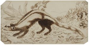 Caricature de Gustave Tourangin en putois, annotée : « Gustave Tourangin 1833 » ; le dessin, comme l’annotation, est plus tardif, et date plutôt des années 1840.{CR} Gustave Tourangin (1815-1872), ami de George Sand, était naturaliste ; George Sand le surnommait Micro.