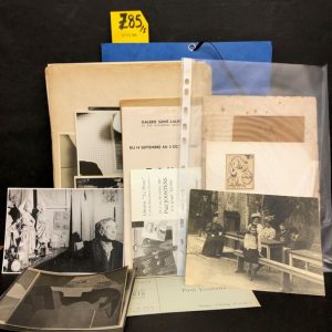 "Cinéma". Encre sur papier, contrecollée sur papier fort. Dim. support : 22 x 13 cm ; sujet : 20 x 6,5 cm./ IDEM. Sans titre (1920). Mine de plomb sur papier, contrecollée sur papier fort. Dim. support et sujet : 18,5 x 14 cm (fines piqûres)./ IDEM. Sans titre. Fusain sur papier brun, contrecollé sur papier (signé au stylo bleu). Dim. support : 25 x 17 cm ; sujet : 19,5 x 10 cm (rousseurs sur le support). On joint une quarantaine de photos (principalement des oeuvres de Joostens), quelques cartons d'invitation (notamment à la Galerie Saint-Laurent en 1957) ainsi que 2 ex-libris de Joostens contrecollé sur papier. Bel ensemble.