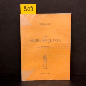 Les Orgies des Quanta. Trente-trois cubomanies non-oedipiennes. Bucarest, Surrealisme, 1946, plaquette 8°, br., couv. jaune rempl. Edit. orig. tirée à 505 ex. num., et parmi ceux-ci un des cinq cent numérotés de 1 à 500. Bel exemplaire.