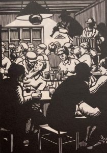 Quinze poèmes illustrés de 57 gravures sur bois, dessinées et gravées par Frans Masereel et suivis d'un Souvenir à Verhaeren par Octave Uzanne. P., Crès, 1917, 4°, CIII-[1] f., imprimés au recto seul, 59 illustrations gravées sur bois dans le texte, dont 1 au titre et 7 à pleine page, bradel plein cartonnage de fantaisie, dos lisse avec titre manuscrit, tête dorée. Edit. orig. tirée à 1555 ex. num. 1/190 papier Fabriano, 2e papier après 15 Japon. Bel exemplaire.