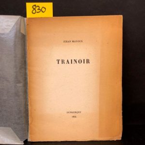 MAYOUX (Jehan). Trainoir. Dunkerque, sans édit., 1935, plaquette petit 4°; 8 p., non coupé (couv. fort brunie). Edit. orig. tirée à 27 ex. num., celui-ci non numéroté mais annoté par l'auteur : "Exemplaire de Léo Malet / Jehan Mayoux".