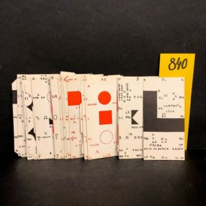 MOINEAU (Jean-Claude). Roman. P., Agentza, "Meta-Art", s.d. (1972), 51 cartes découpées imprimées en rouge et noir, sous petite chemise souple à rabats (chemise brunie). Edit. orig. Livre d'artiste. Théoricien de l'art, membre du groupe Fluxus, Jean-Claude Moineau (Reims, °1942), pratique la poésie visuelle. Participe aux activités "méta-artistiques" au sein du groupe Meta-Art.