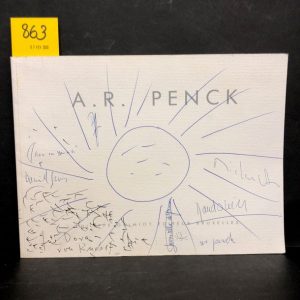 PENCK.- DEVOLDER (Eddy). A.R. Penck. Brux., Guimiot, 1990, 8°, br. Catalogue enrichi d'un dessin signé sur la couverture, contresigné par diverses personnes.