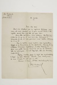 Correspondance avec un interprète apprécié. Il n’est pas question que Gallet joue au Théâtre de l’Avenue ; Verneuil en a trop besoin au Théâtre Antoine, dans une pièce de Georges Berr, puis dans une des siennes : un rôle « magnifique » (17 juillet [1925])… Inutile que Gallet se rende au Théâtre de Paris ; il est promis à Baudry… Instructions relatives à des reprises de Tu m’épouseras, L’Épervier, Ma cousine de Varsovie, Pour avoir Adrienne, L’Amant de Mme Vidal, Azaïs... Demande de nouvelles des Tournées Baret, autorisation à jouer La Pomme… « Si vous trouvez à placer Du sang sur l’hermine […], je peux réduire la durée de la pièce, et il est également facile d’y ajouter des morceaux de chant » (19 avril 1929)… Il parle d’une proposition de Lucien Rozenberg, qui reprend une pièce de Gandérax, et de leurs comptes d’appointements et frais… Il l’engage à chercher un rôle dans la reprise d’Arsène Lupin au Théâtre Sarah Bernhardt, et le prie de lui envoyer copie du contrat pour la pièce de Pierre Véber et Henri de Gorsse : « je ne suis pas en excellents termes avec cette directrice du Théâtre Daunou » (29 avril 1929)… On rencontre aussi les noms d’André Brulé, Saturnin Fabre, Jane Renouardt, Mme Vix, etc.