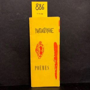 Poèmes. S.l.n.d. [L'Auteur, 1958], 1 f. 8° en accordéon de 18 pages, d'un côté 9 poèmes imprimés en noir sur fond blanc, de l'autre 1 lithographie originale en 2 tons qui dépliée mesure 90 x 24,5 cm. Livre d'artiste tiré à 100 ex. num., justifiés et signés au stylo par l'artiste (Retrospective, Paris, Jeu de Paume ; Nîmes, Carré d'Art, 1992, p. 32).