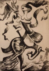SELIGMANN.- COLLET (J.P.). Flaques. Poèmes ornés de trois eaux-fortes originales de Kurt Seligmann. P., Les Ecrivains réunis, 1935, 8°, br., à toutes marges (cachet sur la couv. : "imprimé en Belgique"). Edit. orig. tirée à 145 ex. num. sur Featherweight.