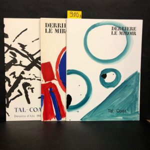 N° 120. Tal-Coat. Dessins d'Aix 1947-1950. P., Maeght, 1960, in-folio, en feuilles. Bien complet des 5 lithographies./ Idem. N° 131. Tal-Coat. P., Maeght, 1962, in-folio, en feuilles. Bien complet des 5 lithographies./ Idem. N° 153. Tal-Coat. P., Maeght, 1965, in-folio, en feuilles. Bien complet du supplément "Chroniques" et des 8 lithographies./ Ens. 3 vol.