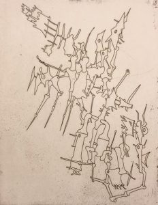1/30 ex. de tête comportant une eau-forte originale d'Yves Tanguy.- TANGUY.- PERET (Benjamin). Feu central. Avec des illustrations d'Yves Tanguy. P., K. Edit., "Le Quadrangle", 1947, grand 8°, br., couv. illustrée ajourée. Cette couverture spéciale a été exécutée sur une maquette de Pierre Faucheux, d'après un dessin d'Yves Tanguy. Edit. orig. tirée à 1030 ex. num. 1/30 ex. de tête sur pur fil Johannot comportant une eau-forte originale d'Yves Tanguy (planche volante, justifiée à l'encre). Bel exemplaire à toutes marges.