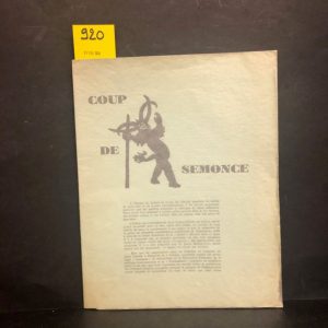 Tract surréaliste.- "Coup de semonce". Paris, 25 mars 1957, 1 feuillet 4° de 4 pages imprimé en noir. Edit. orig. 1/40 ex. de luxe, signé aux crayons de couleurs par E.L.T. Mesens, André Breton, Jean-Louis Bédouin, Benjamin Péret, Robert Benayoun, Gérard Legrand, Charles Flamand et Joyce Mansour. Long tract contre les tendances religieuses et réactionnaires de Georges Mathieu et Simon Hantaï en réaction à l'exposition de la Galerie Kléber. On joint un second exemplaire (tirage courant)./ Ens. 2 pièces.