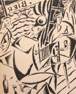 Miousic. Sept poèmes à la louange de la musique baroque. Ornés de sept dessins rehaussés au pochoir par Géo Navez. Brux., Sélection, 1921, grand 4°, 45 p., br., couv. illustrée. Edit. orig. tirée à 132 ex. num. 1/100 Hollande. Superbes compositions de Géo Navez (non rehaussées dans notre exemplaire).