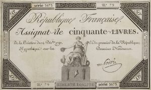 Assignats de 10 livres (1792), 50 livres (1792), 10 sous et 50 sols (1793), 125 livres (an II), 100 francs (an III), et promesse de mandat territorial de 25 francs (an IV).{CR} On joint 13 gravures sur la Révolution, dont des scènes par Raffet et Ary Scheffer.
