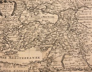 5. Pologne, — 6. Italie, — 7. Turquie en Europe, — 8. Hongrie, — 9. Asie, — 10. Turquie en Asie, — 11. Anatolie, — 12. Mer noire, — 13. Sorie et Diarbeck, — 14. Turcomanie, Georgie, Commanie, — 15. Arabie, Petrée, Deserte et Hevreuse, — 16. Empire du Sophy des Perses, — 17. Empire du Grand Mogol, — 18. Presqu’Isle de l’Inde dans le Gange et dans un cartouche le Malabar, — 19. 2 cartes : Partie de l’Inde au dela du Gange et Presqu’isle de l’Inde au dela du Gange, — 20. Chine, — 21.La Grande Tartarie, — 22. Japon,— 23. 2 cartes : Les Isles Philippines et Isle des Larrons, — 24. Les Isles Molucques, Celebes, Gilolo, etc., — 25. Les Isles de la Sonde : Sumatra, Iava, Borneo, etc., — 26. Ceylan et Maldives, — 27. Afrique, — 28. Maroc, — 29. Royaume de Fez, — 30. Le Royaume d’Alger, — 31. Le Royaume de Tunis, — 32. Désert de Barca et l’Égypte, — 33. Partie du Biledulgerid ou sont Tesset, Darha et Segelmesse, — 34. Égypte ; Afrique ou Libie ulterieure ou sont le Saara ou desert, le Pays des Negres, La Guinée, etc., — 35. Guinée, — 36. Haute Aethiopie, — 37. Le Zanguebar (2 cartes), — 38. Congo, — 39. Pays et Coste des cafres, — 40. Madagascar, — 41. Cap Verde, — 42. Canarie, — 43. Malte, — 44. Malte, — 45. La Floride, — 46. Mexico, — 47. Californie, — 48. Guatimala, — 49. Les Isles Antilles, — 50. Amerique Meridionale, — 51. Royaume de Grenade, — 52. Guiane, — 53. Perou, — 54. Chili, — 55. Bresil, — 56. Paraguay, — 57. Destroit de Magellan.
