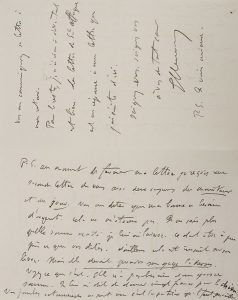 Il est heureux d’apprendre qu’il se porte un peu mieux : « Vous ne pouvez vous passer le luxe d’aucune imprudence. Donc, attention »... Il le prie de bien vouloir envoyer un mot de sa part à Troubat... Lui-même se porte mieux. Il s’inquiète de sa bonne qui manque d’argent : « Elle n’a pas besoin d’une grosse somme. Je lui ai dit de donner vingt francs pour le chien. Vos jambes cotonneuses ne sont rien. C’est la poitrine qu’il faut surveiller ».