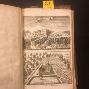 Ypres et de 132 planches de cartes, vues et plans de villes et de châteaux de Flandre sur simple page, double page ou dépliantes, les vues des châteaux comprennent 2 châteaux par planche (qqs gravures découpées et remontées), plein cuir de Russie brun du 19e siècle, dos à 6 nerfs, titre, filets et fleurons dorés, ex. déboîté.