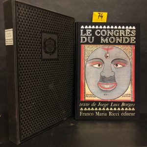BORGES (Jorge Luis). — Le Congrès du monde. — Illustré de miniatures de la cosmologie tantrique.— Milan, Franco Maria Ricci, 1979, in-folio agenda, toile édit., étui. — Ex. num. sur papier bleu à la main.