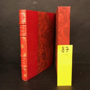 date dorés, pointillés dorés sur les nerfs, double filet doré en carré avec fleurons d’angle entre les nerfs, tête dorée sur témoins, couv. et dos cons., étui cartonné (reliure signée Sauer, Gand, signature à froid au 2e contreplat).