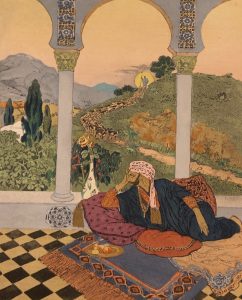 CARRE, Léon.- TOUSSAINT (Franz). — Le Jardin des caresses. — Illustrations en couleurs de Léon Carré. — P., Piazza, s.d., grand 8°, demi-maroquin bordeaux à coins, dos à 5 nerfs, auteur et titre dorés, tête dorée sur témoins, couv. et...