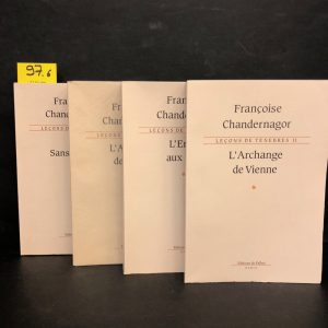 CHANDERNAGOR (Françoise) — Leçons de ténèbres. - I. La Sans pareille.- II. L'Archange de Vienne.- III. L'Enfant aux loups. P., Fallois, 1988-90, 6 vol. 8°, br., non coupé. — Edit. orig. 1/120 ex. num. sur vélin pur chiffon, seul grand papier.