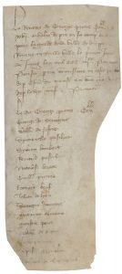 dieppe. Pièce sur vélin, Dieppe 1er juin 1380 ; vélin in-8 (environ 17,5 x 8 cm) découpé (mouill.).