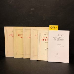 ─ On joint 4 éditions originales de l'auteur parus en tirage courant chez Gallimard, chacunes enrichies d'un envoi : Le Manuscrit inachevé, 1981 ; Le Vase de Gurgan, 1983 ; Le Visiteur insolite, 1985 ; Capricieuse Diane, 1989./