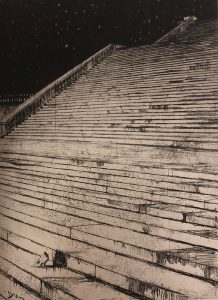 Tirage limité à 396 ex. num. 1/283 vélin d'Arches teinté comprenant le tirage définitif en noir de toutes les planches terminées et d'une planche refusée.