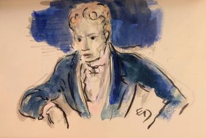 Exemplaire unique enrichi de 41 aquarelles d'Emilien Dufour.- DUFOUR.- STENDHAL. — Armance. — Aquarelles de Emilien Dufour. — Quelques scènes d'un salon de Paris en 1827. — P., Guillot ; Neuchâtel, Edit. du Griffon, "Des oeuvres de...