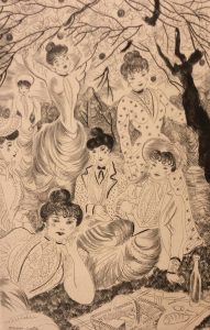 GRAU SALA.- MAUPASSANT (Guy de). — La Maison Tellier. — Illustré de 27 gravures en pointe sèche de Grau-Sala. — P., Les Heures Claires, 1951, grand 8°, en feuilles, double emboîtage illustré de l’éditeur (décharge de l’étui sur la...