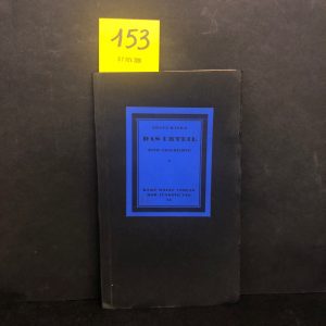 KAFKA (Franz). — Das Urteil.— Eine geschichte. — Leipzig, Kurt Wolff, "Der Jüngste Tag", 1916, 8°, 28 p., br., couv. noire portant une étiquette de titre bleu et noir, non coupé.