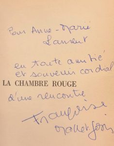 « Pour Anne-Marie Laurent, en toute amitié et souvenir cordial d’une rencontre. Françoise Mallet-Joris ». Bel exemplaire.