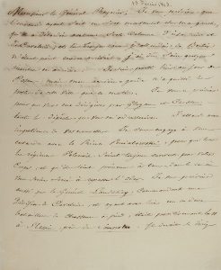 Réorganisation de la Grande Armée après la retraite de Russie.{CR} L’ennemi a fortement progressé sur sa gauche, « qu’il a débordée avec une forte colonne d’infanterie et de cavalerie, et les troupes que j’attendais de Berlin n’étant point encore arrivées, j’ai dû faire quelques marches en arrière ». Il a quitté Posen la veille mais son arrière-garde n’a quitté les postes que ce matin : « Je vous en préviens pour que vous me dirigiez par Glogau et Crossen toutes les dépêches que vous m’adresseriez ». Il attend de ses nouvelles avec impatience et l’engage à s’entendre avec le Prince Poniatowski, « pour que tous les régiments Polonais soient toujours couverts par votre Corps, et qu’ils soient prévenus à tems, dans le cas où vous seriez forcé à repasser l’Oder ». Il le prévient également que le général Landskoy, commandant d’une division de cavalerie ayant avec lui un ou deux bataillons de chasseurs à pied, se trouvait le 11 à Slessin et qu’il devait se diriger sur Kalisch par Konin : « Il n’avait avec lui que six canons ». Quant à lui, il n’arrivera que le surlendemain à Mezeritz où il fera un ou plusieurs séjours…