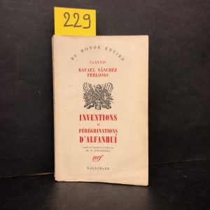 SANCHEZ FERLOSIO (Rafarel). — Inventions et prégrinations d'Alfanhuí (Industrias y andanzaz de Alfanhuí). — Traduit de l'espagnol et préfacé par M.-E. Coindreau. Roman. — P., Gallimard, "Du Monde entier", 1957, in-12, br.