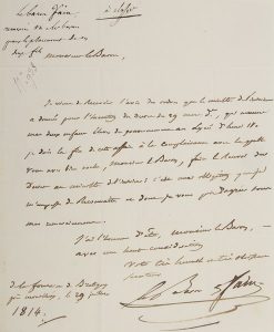 Agathon, baron FAIN (1778-1837) secrétaire de Napoléon Ier. L.A.S., de la Fontaine de Brétigny 29 juillet 1814, au baron de Vitrolles à Paris ; 1 page in-4, adresse.