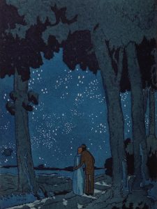 Reliure de Peeters.- SAUVAGE.- RÉGNIER (Henri de). — Le Mariage de Minuit. — Aquarelles de Sylvain Sauvage. — P., Plicque, 1926, petit 4°, demi-maroquin brun à coins, dos à 5 nerfs, auteur et titre dorés, tête dorée sur témoins, couv....