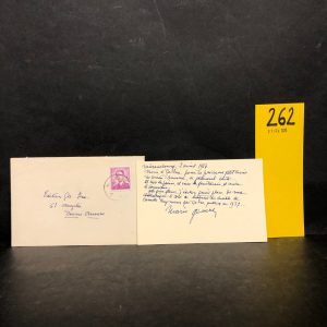 GEVERS, Marie (1883-1975), romancière belge. — Carte autographe signée, enveloppe conservée, adressée à « Ça ira ». — Marie Gevers remercie pour l’envoi d’un volume des « Soirées d’Anvers » certainement par l’éditeur, Paul...